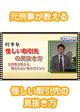 ビジネスライフを脅かす、怪しい取引先との出会い。それはある日突然やってきます。しかし詐欺の手口をしっかり把握していれば、商談相手が信用できるかを判別することは難しくありません。詐欺犯罪を担当していた元刑事が、怪しい取引先や人物を見抜く方法を教えます。(2014年制作)